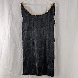 Black and Gold Sequin Fringe Flapper Dress/Costume