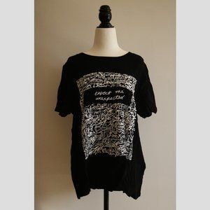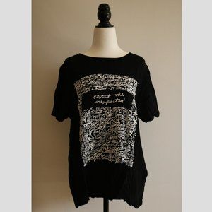 Super cute expect the unexpected graphic shirt. Not t-shirt material, almost like a linen I think. Great pre-loved condition, please see photos for details.