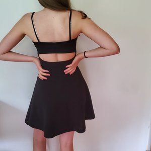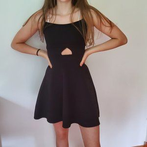 super cute black dress with cut-outs in the front and back, can be worn casually or dressed up to look more formal, very simple but gorgeous dress