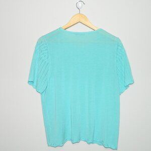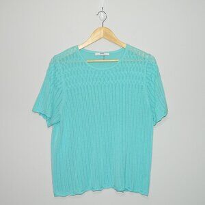 Details: This listing is for a pre-owned turquoise Blue Women’s “Alia” Petite Waist Length Short Sleeve Lightweight Sweater in a P/L.
