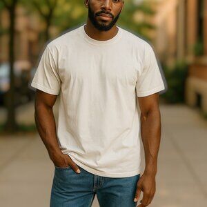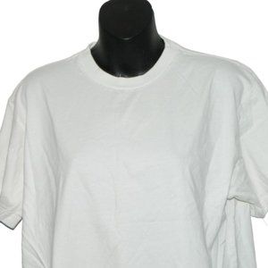 Details: This listing is for a pre-loved plain white, short sleeve high crew neck t-shirt