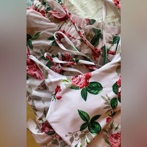 ⚜️3 for $30⚜️ Bikini Top and Sheer Shorts Set (Vintage Floral Design Peony Rose)