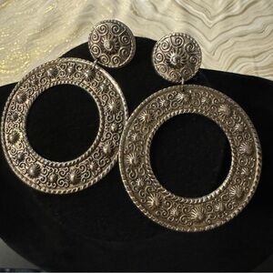 Add this lovely pair to your statement jewelry collection! Love the antique / aged bronze tone of these and the beautiful textured embossed pattern. Let me know if you require further photos/videos of this item or have any questions.