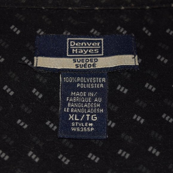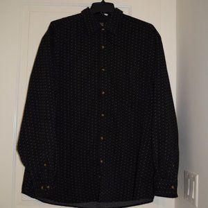 3 for 30 ~ Denver Hayes Button Down Shirt Sueded Fabric Black & Ivory Pattern XL