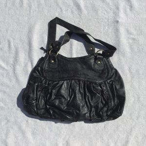 Large zippered main compartment with smaller zippered side pocket on the side. Separate small side pock on front of the purse. Main compartment fit my laptop with plenty of room for my wallet and anything else I want to bring.