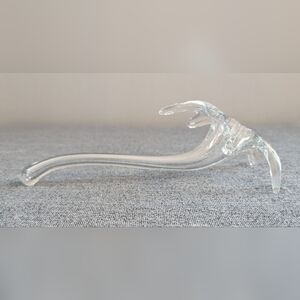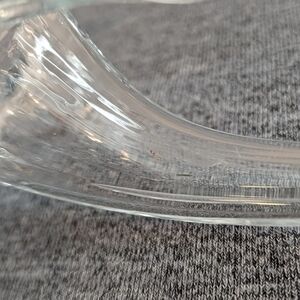 Pilgrim Glass, 9" Blown Glass Flower Vase. In very good used condition; there is a small amount of dirt in the stem that I was not able to remove while cleaning (see photos) but there are no other signs of wear, damage, or defects. Measures 9" long, max width 6", height 4" (as displayed in first photo). Can be used as a bud vase or as a decorative glass piece.
