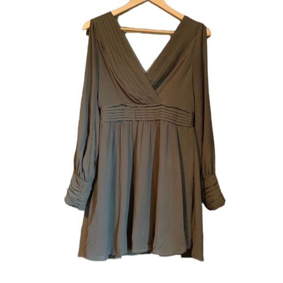 3 for $30! Very J brown deep v long sleeve dress