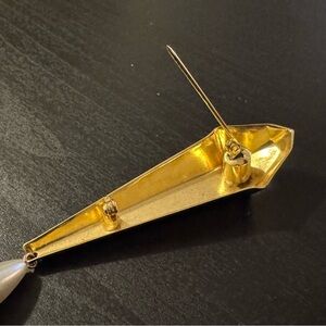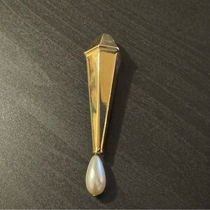 ⚜️3 for $30⚜️ Vintage Gold Tone Bar Brooch with Hanging Faux Pearl