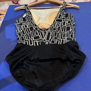 For your consideration. Preloved good condition bathing suit. Size 8, but tags have been cut out. Built in bra cups.