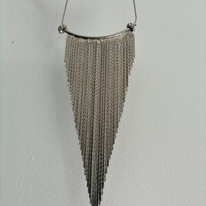 Like-new condition. Silver-coloured. Great with a V-neck or plunging neckline.