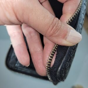 ❤️ 3 for $35 Coach leather woven long zip around large wallet black gray silver