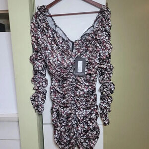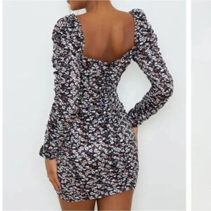 ❤️ 3 for $35 Pretty little thing ditsy long sleeve floral satin runched dress 8