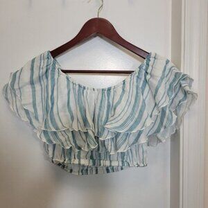 ❤️ 3 for $35 Show me your mumu kaya crop top ruffles off shoulder tiered small