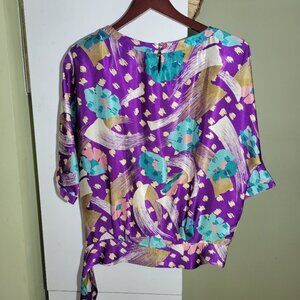 ❤️ 3 for $35 VINTAGE 80s oversized satin drop waist tie blouse top small medium