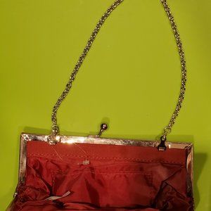 3 for $50 * Y2K Red Evening Clutch Rhinestone Buckle Silver Chain Poufy Organza