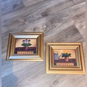 3 for 55$ Home Wall decor Set of 2 Gold paint wood frames plants begonia 7“x 8”