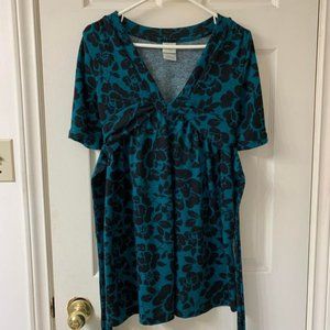 🌷3 for$20🌷725 Originals, US XS, Turquoise & Black Floral V-Neck Smock Dress