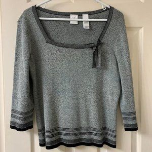 🌷3 for$20🌷Emma James, US M, Grey Bow Detail 3/4 Sleeve Square Neck Knit Top