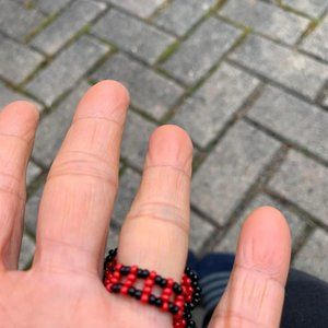 🌷3 for$20🌷Handmade, Beaded Red & Black Flower Ring, Fits up to Ring Size 8