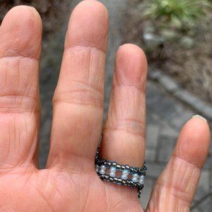 Handmade, Beaded Blue and Gold Flower Ring, Fits up to Ring Size 8, Good Condition, Glass Seed Beads
