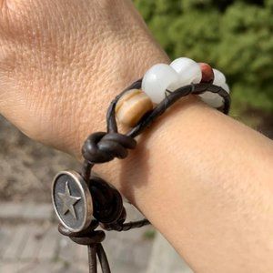 🌷3 for$20🌷Handmade Onyx Gemstone & Leather Bracelet