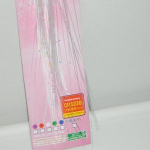 This listing is for an LED Fiberoptic Muliticolour Flashing LED Hair Clip (this means that it will constantly flash through 5 colours, purple blue, green, white, red and then does a slow strobe through all the colours - not in that colour order exactly). This can be worn to your favorite concert or party and be the envy of others ladies when you walk in with these flashing fiber optic hair extensions.