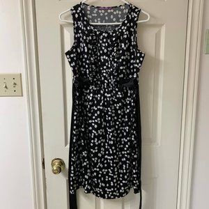 Smart Set, US S (Comfortably Fits Up to US M), Black and White Polka Dot Sleeveless Dress, Good Condition, Polyester/Spandex Blend, Ruffle Front Bodice, Ribbon Belt, Stretchy