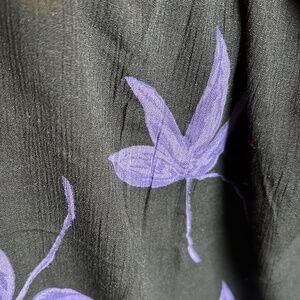 3 metres Silk Gerogetta Fabric - Black with Purple Flowers