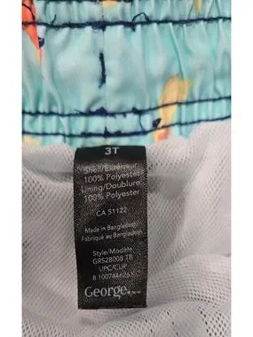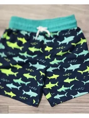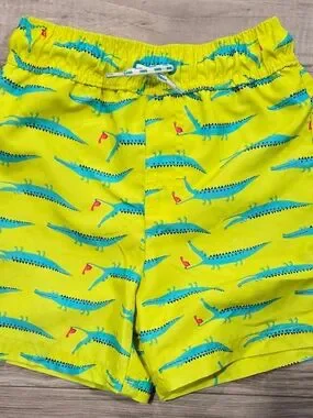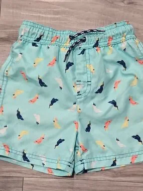 Three cool swim trunks for your kiddo. Bright crocodiles, birds and sharks swim trunks. Elastic waist with drawstring for a secure, adjustable fit. Lightweight, quick-dry fabric perfect for pool or beach days. Fun, kid-friendly design by George. Preloved like new.