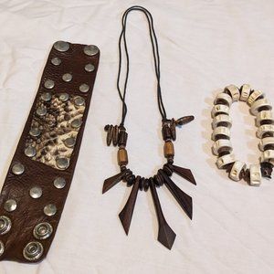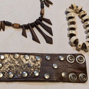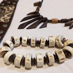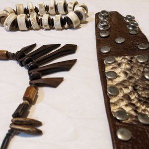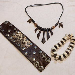 3 piece Leather, bone and wooden jewelry set