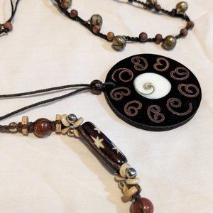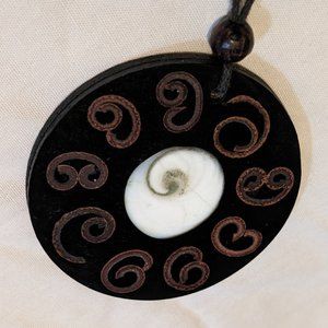 Eye of Shiva and wood resin pendant on adjustable cotton chord