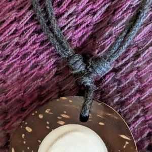 Eye of Shiva necklace set in coconut shell on adjustable cotton chord