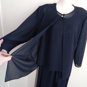 Elastic waisted pants, sleeveless matching top and a semi sheer matching long sleeve coverup