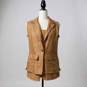 Elevate your style with this chic tan sleeveless jacket. Perfect for layering and versatile for any occasion.