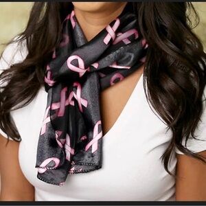 FDJ French Dressing scarf featuring a pink ribbon print, commonly associated with breast cancer awareness.