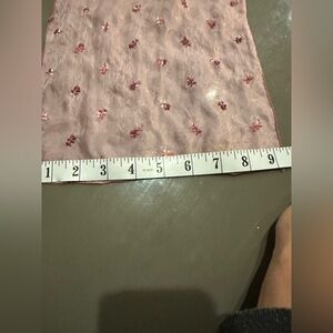 pink chiffon scarf with floral embroidery- small blemish, seen in pictures and video