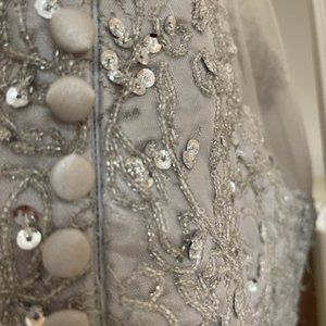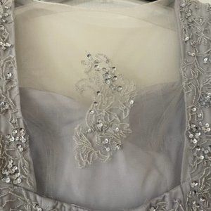 3 matching silver grey bridemaid dresses. excellent condition. worn once. cleaned Sequins and crystals immaculate.