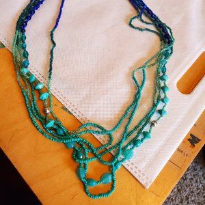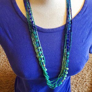 30" Blue and Green Seed Bead Long Layered Necklace