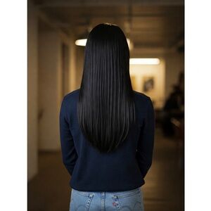 30” nano beads hair extensions made with 100% human hair. Natural black (#1B), straight texture.