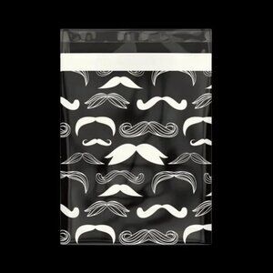Quantity of 15 10x13" Standard Size Premium Designer Printed Shipping Mailers in moutache pattern and 15 12x15" in plain white