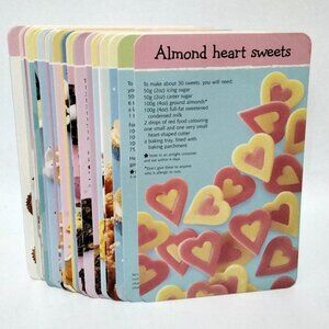 From Usborne Publishing in London England, this is a box of "30 Yummy Things to Cook and Eat" is a delightful collection of cooking cards designed for children. Each card features a simple and tasty recipe, complete with a mouth-watering photograph of the finished dish on one side and clear, step-by-step picture instructions on the other. Some of the recipes you can find in this set include chocolate brownies, mini meringues, raspberry ice cream, and ginger star biscuits. It's a great way to introduce kids to cooking, making it fun and easy for them to follow along.