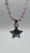 30 inches of individually silk thread knotted gem stones. Colour blocked, natural moonstone and purple kunzite accented by a gorgeous heafty, sterling silver star. The star is three dimensional with a different design on each side and a heavy silver bail. This star floats freely on the gem stones adding a bohemian feel to this statement piece.