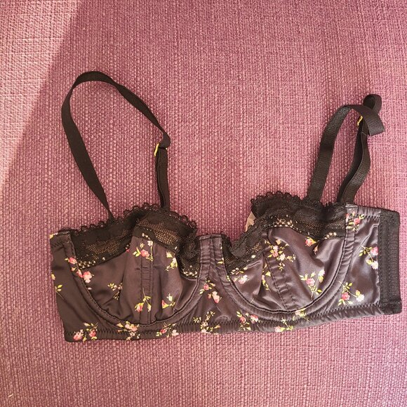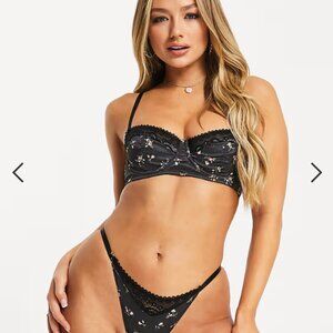 30B ASOS DESIGN ditsy floral & lace underwire bra in black