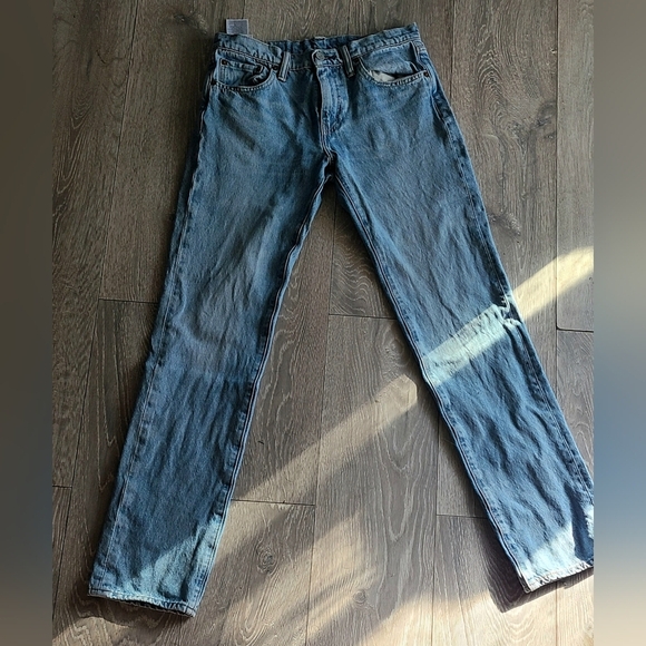 Light blue, gently worn 30x32 Levi's 511 jeans. Zip up fly.