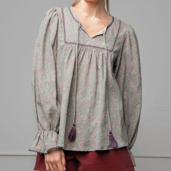 31. EASEL FLORAL PRINTED TOP - SAGE GREY