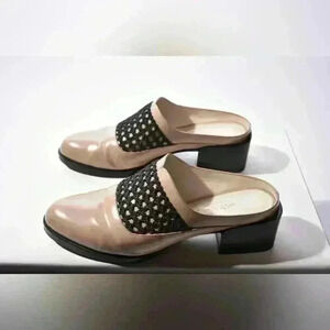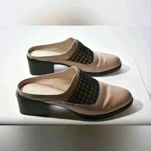 3.1 PHILIP LIM Tan Beige Black Leather Woven Chunky Heel Mule Slide Shoe 39EU 9D