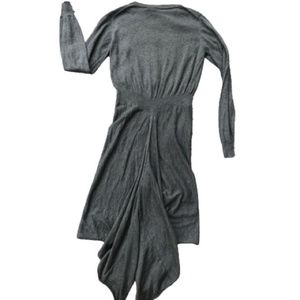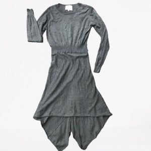 3.1 Phillip Lim dress has a round neck, long sleeves, ribbed trims, a ribbed panel at waist, is longer at the back than the front and simply slips on. 40% wool, 35% modal, 20% cotton, 5% cashmere.
