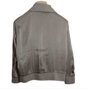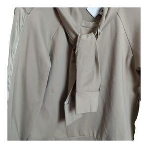 This is a beige top with a stretch jersey front and silk back 3.1 Phillip Lim. It has a tie neck made from a sleeves.