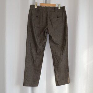 Brown wool cropped dress pants by 3.1 Phillip Lim. In a neutral subtle plaid pattern. Cigarette style slightly tapered leg. Similar to cover photo (style currently on their site)