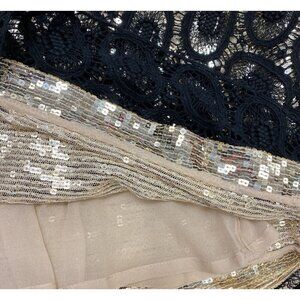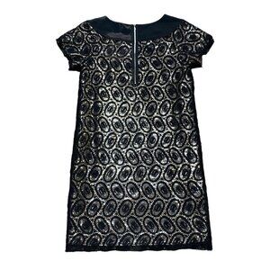 3.1 Phillip Lim Black Gold Crochet Overlay Sequin Dress, Size 4 Shift Mini.